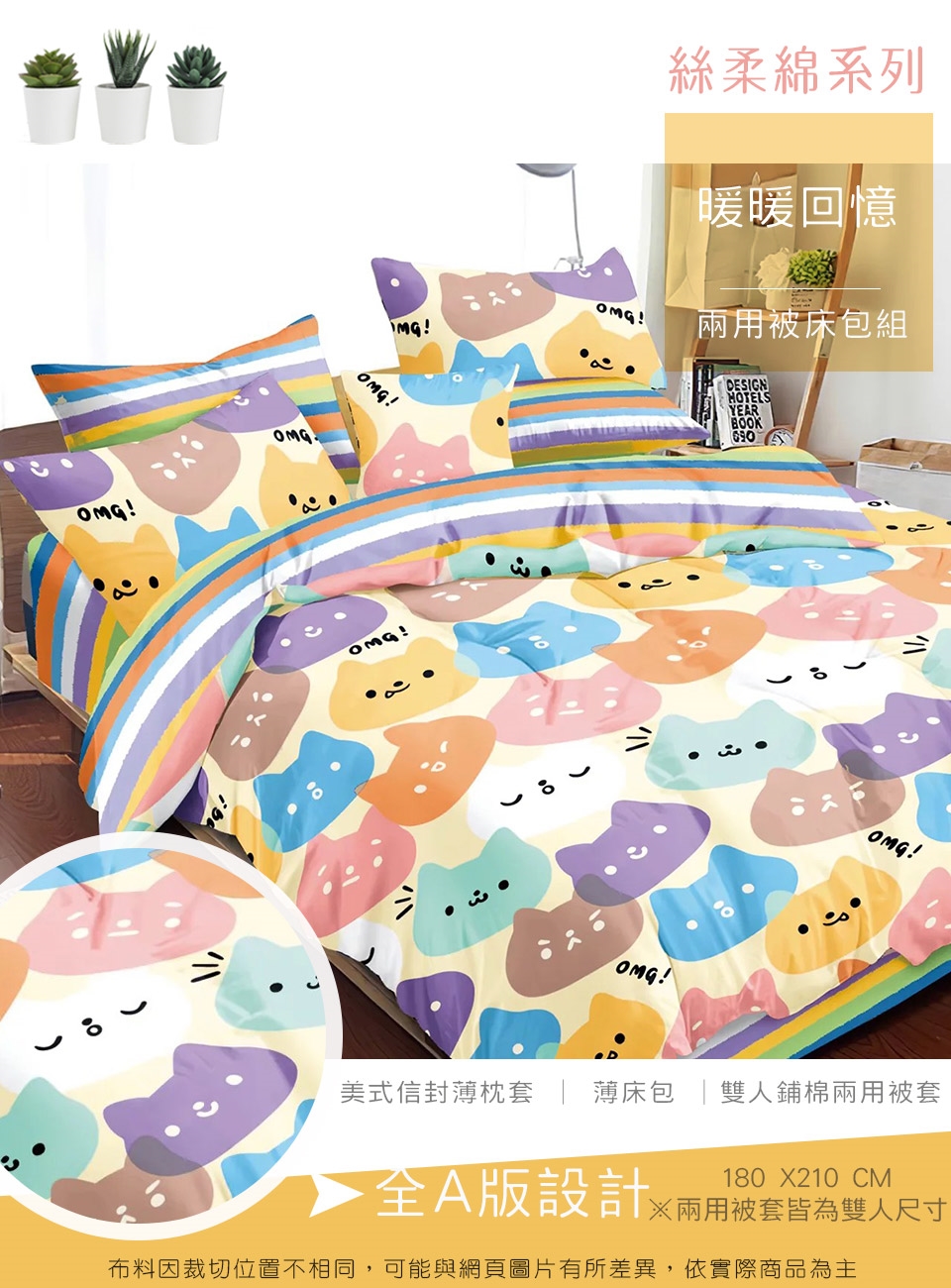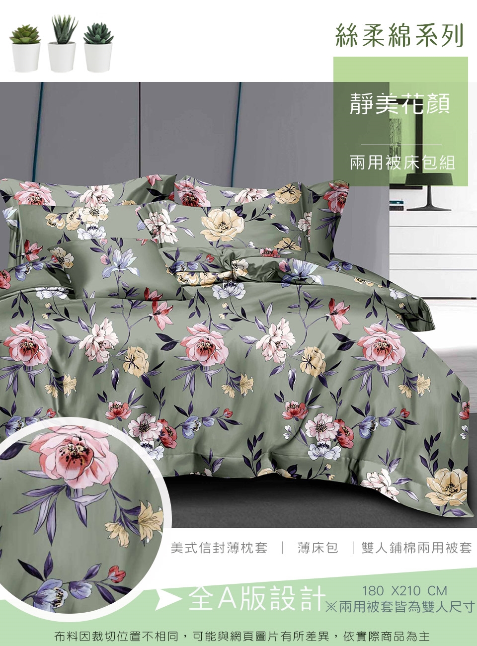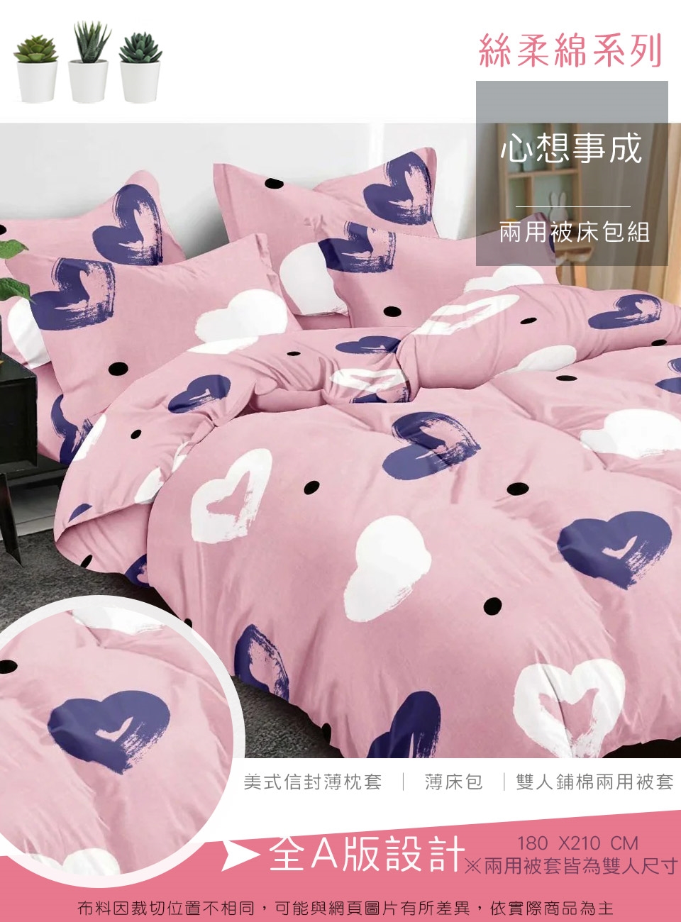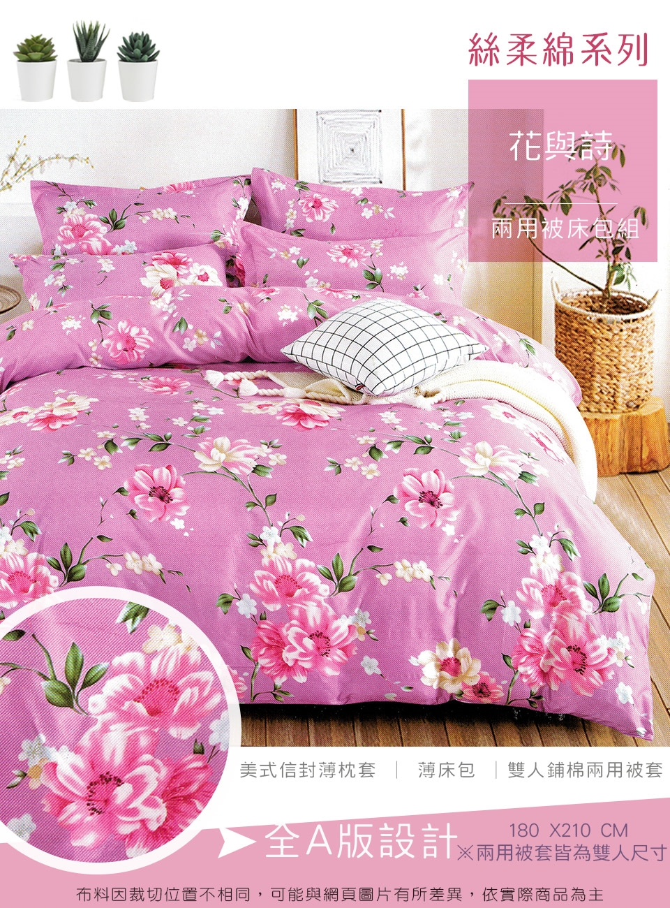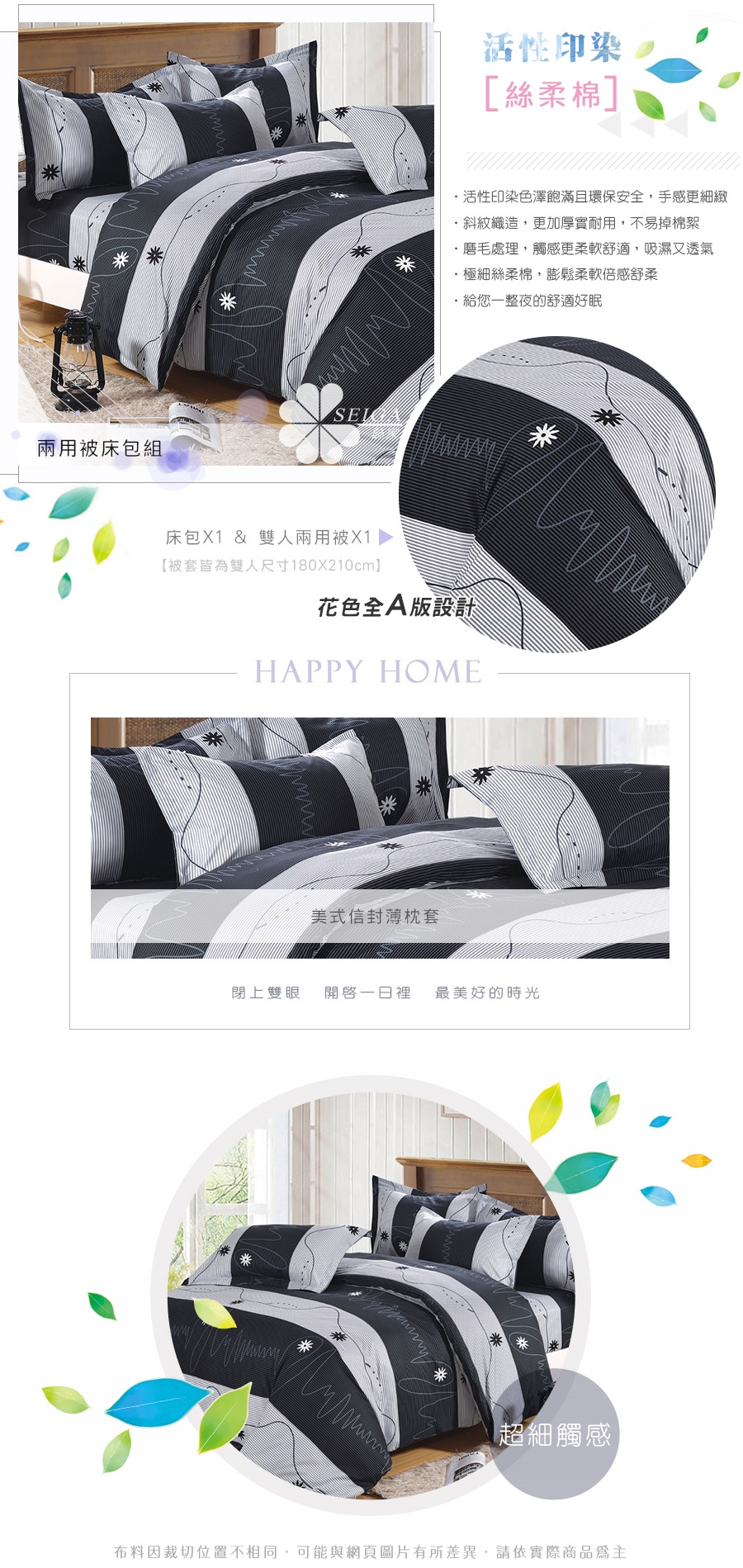 2. 枕套因裁切方式會有不同圖段不一定會與花色展示圖中一致,下單前請考量是否能接受此裁製方式。