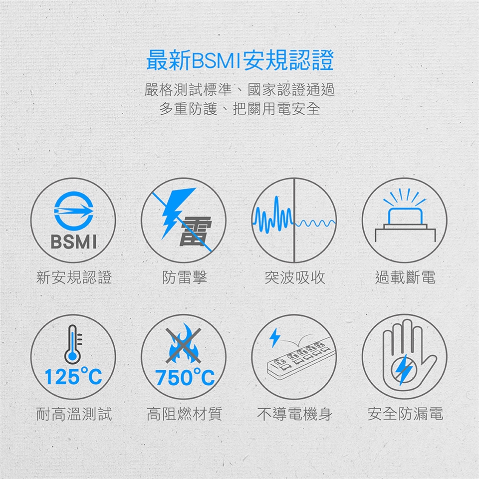 多重安全防護,抗雷擊突波吸收,嚴格把關用電安全