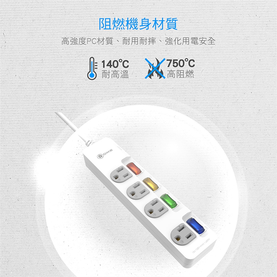 PC機身材質,140°C耐高溫/750°C高阻燃、強化用電安全