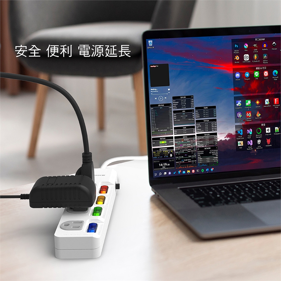 避免誤觸斷電,獨立帶燈電源設計、輕鬆斷電免插拔