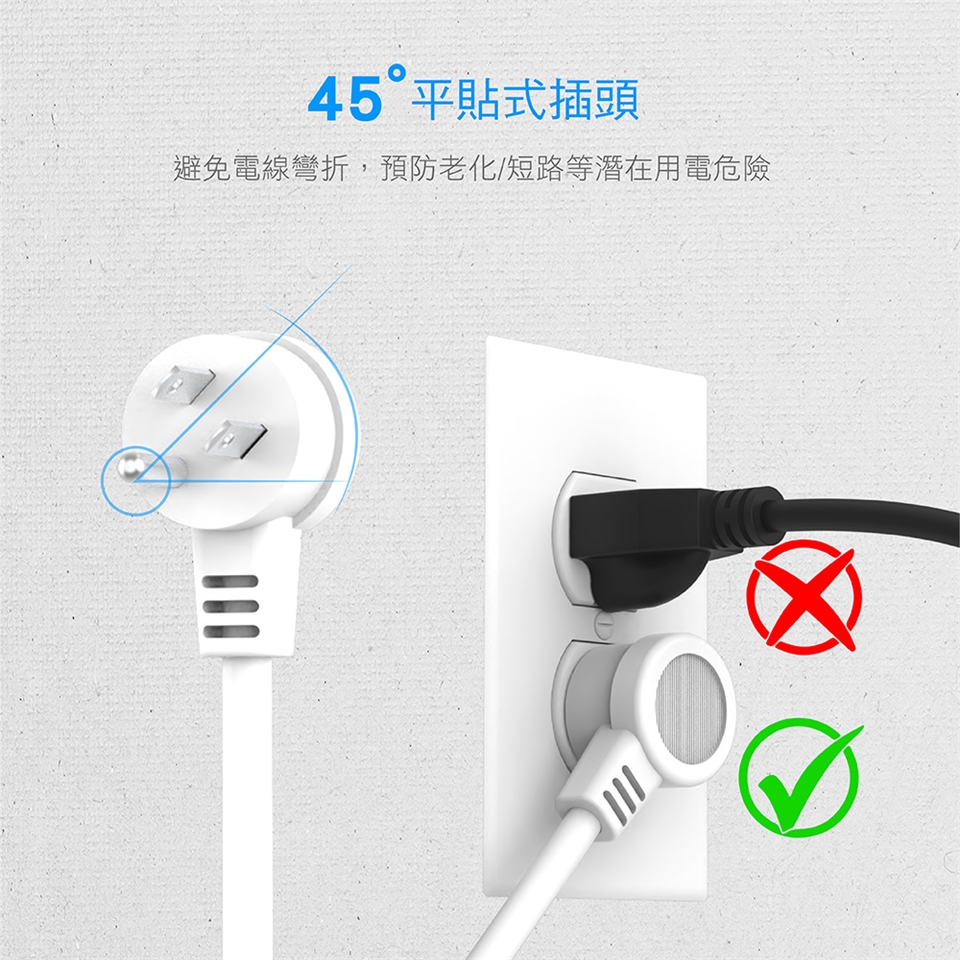 省空間斜角造型、平貼設計防止線材擠壓與走火意外