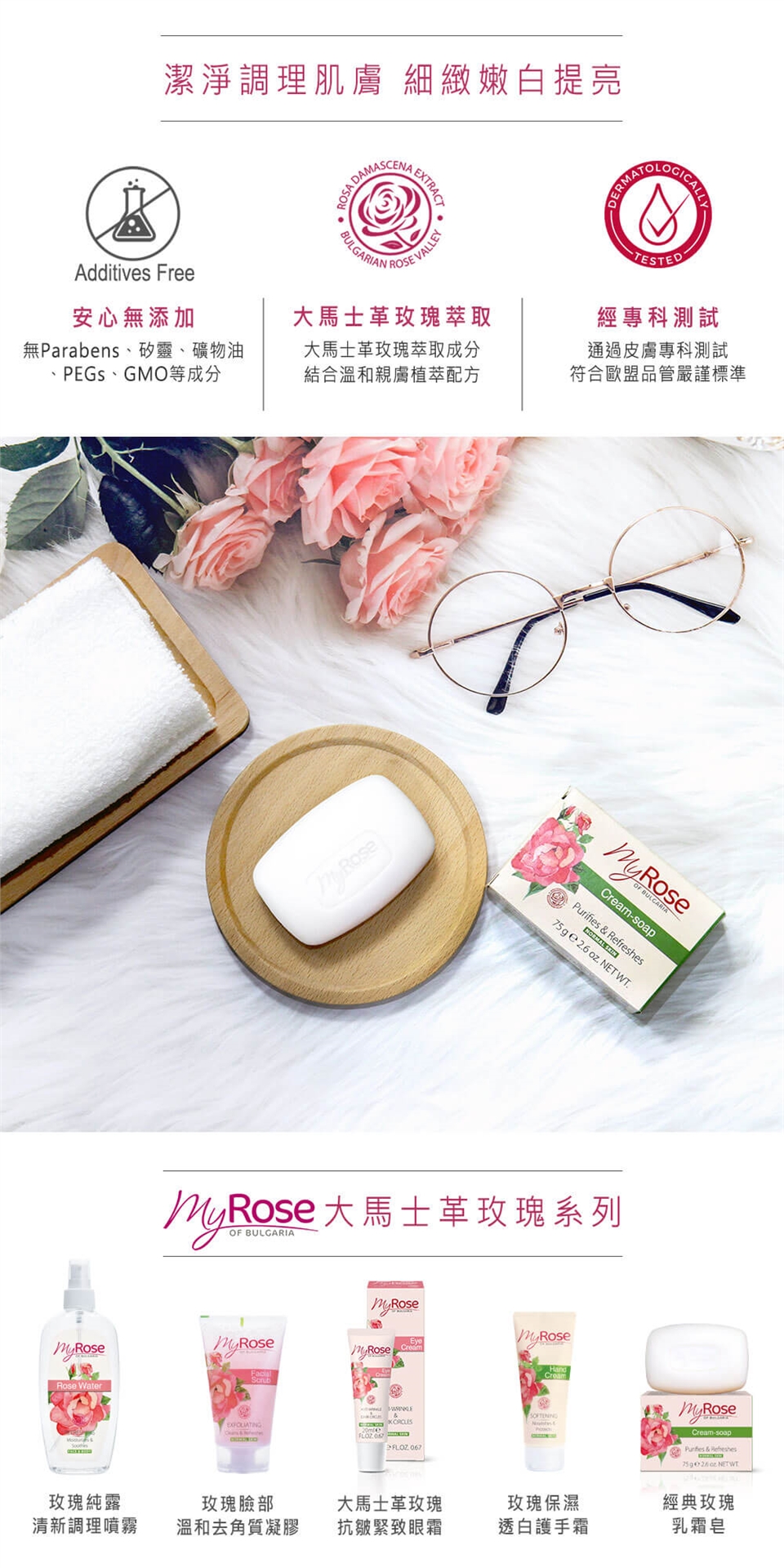 保加利亞經典玫瑰乳霜皂採用純正初榨橄欖油為基底,溫和淨化調理肌膚,