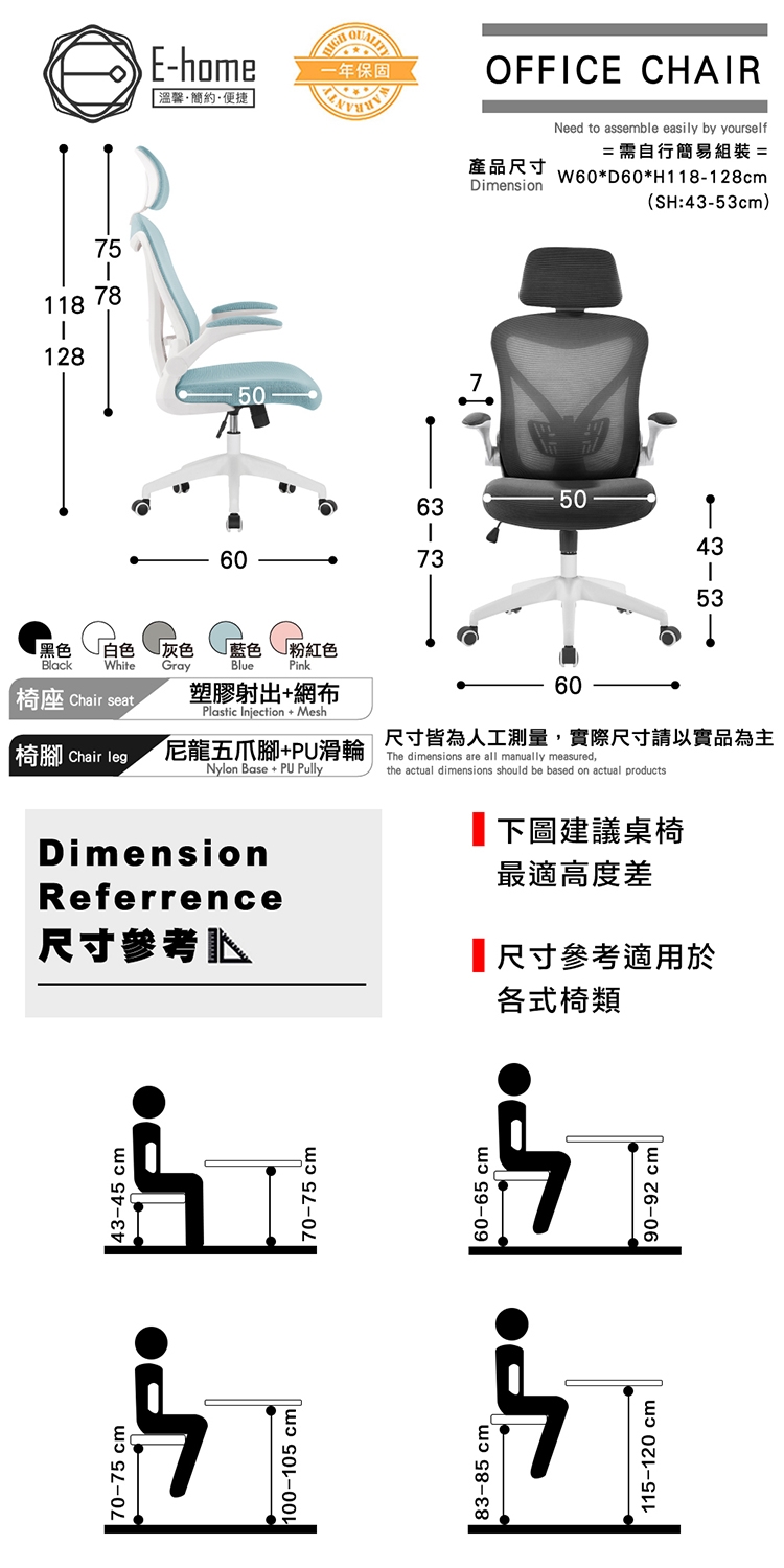 正常使用下,結構保固一年,立即添加到購物車,您將體驗此電腦椅功能性和舒適性!