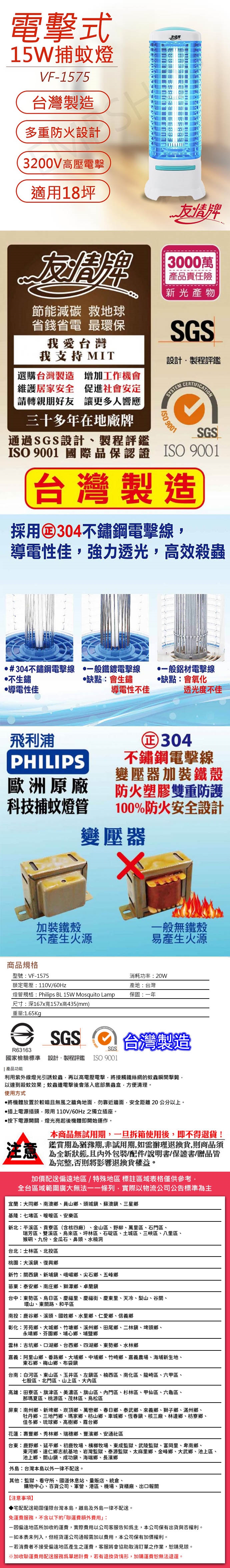 【友情牌】15W電擊式捕蚊燈 VF-1575