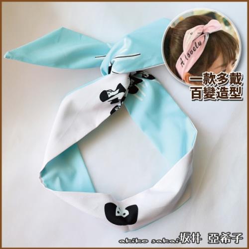 『坂井.亞希子』甜美女孩緞面一款多戴造型髮帶 -藍粉女孩款
