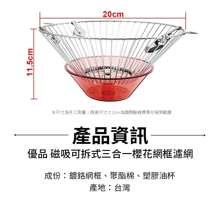 成份:鍍鉻網框、聚酯棉、塑膠油杯