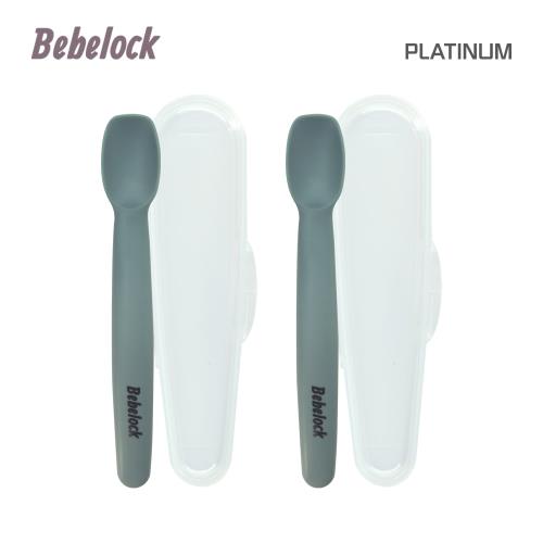 BeBeLock離乳餵食軟湯匙(附盒)-夜月灰 2入