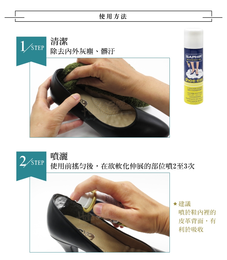 建議噴於鞋內裡的皮革背面,有利於吸收