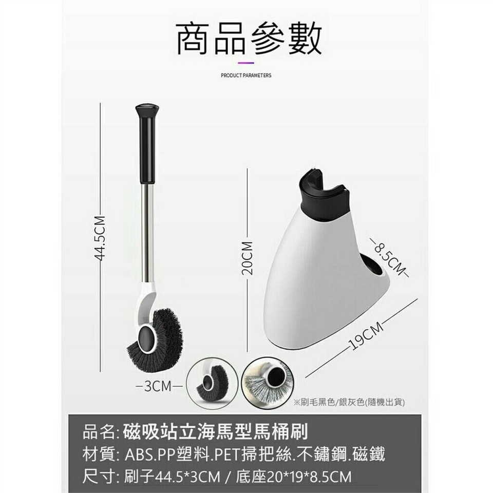 磁吸站立海馬型馬桶刷,獨特的造型設計,可輕易清潔馬桶四周內壁,能深入馬桶底部刷洗,視線死角都能清個一乾二淨,磁吸底座好拿易放、防手沾汙,懸空通風,防止細菌滋生,PET長絲去汙力強,清洗馬桶不費力,是清潔馬桶最佳專用刷,不再藏汙納垢!