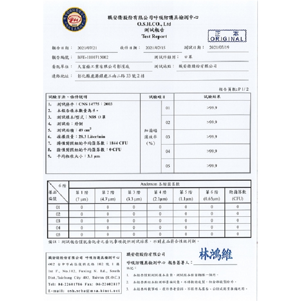 本產品通過CNS14774醫用口罩標準