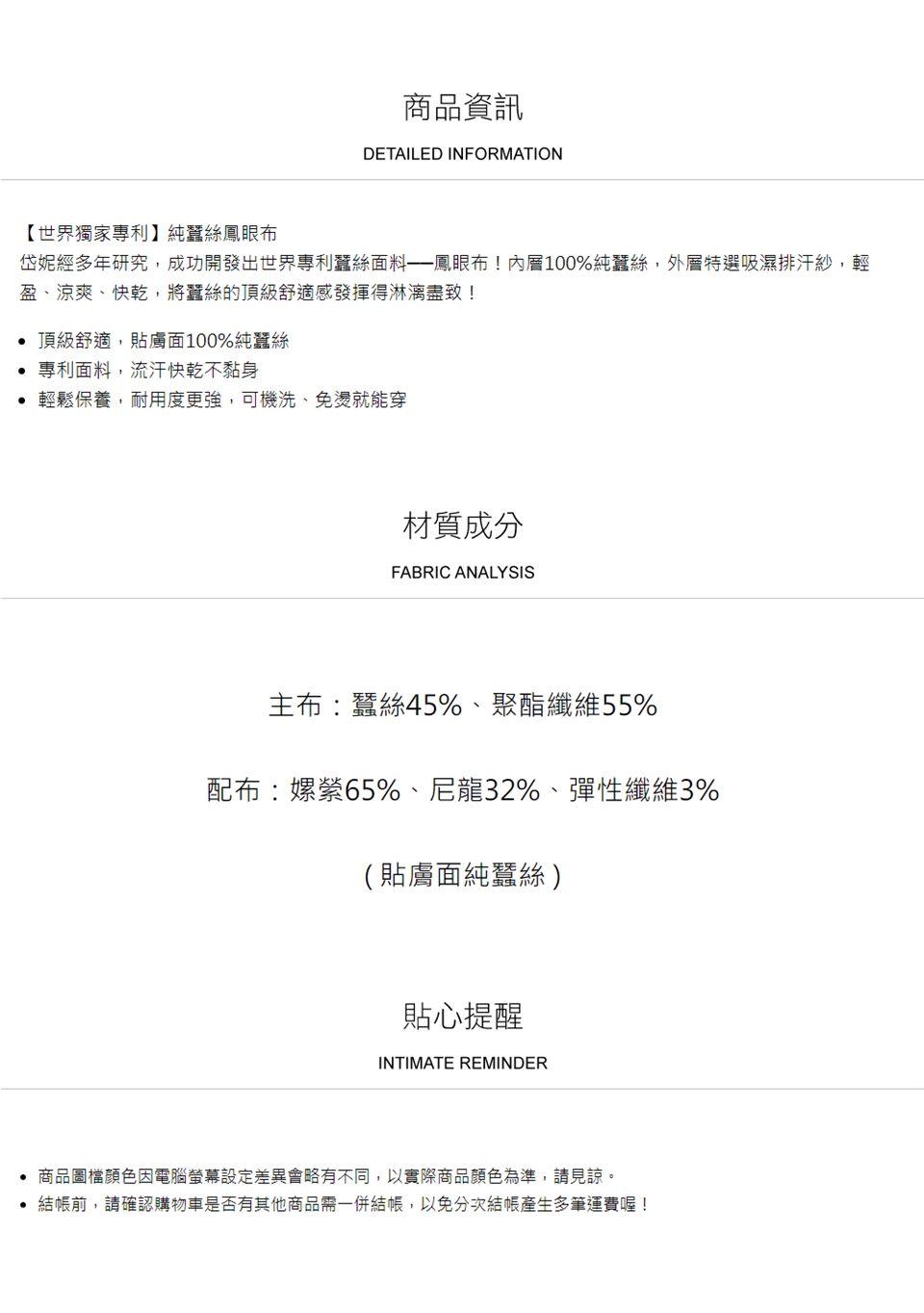 ► 蠶絲最主要的成分就是蛋白質,如洗劑內有分解成分(蛋白分解酵素),將會造成蠶絲商品永久性傷害。