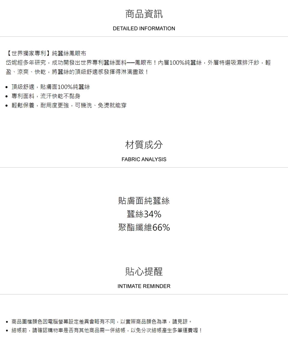 ► 蠶絲最主要的成分就是蛋白質,如洗劑內有分解成分(蛋白分解酵素),將會造成蠶絲商品永久性傷害。