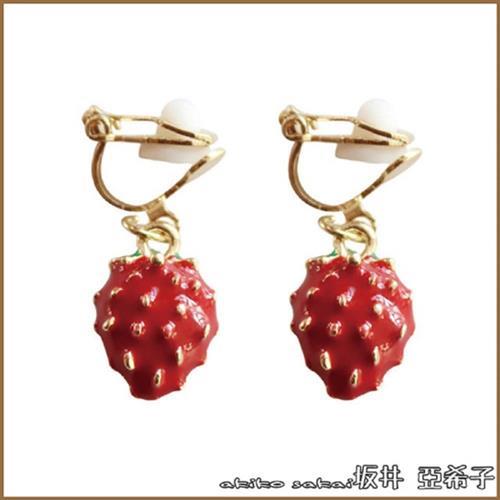 『坂井.亞希子』清新可愛風格草莓造型珍珠耳環耳夾