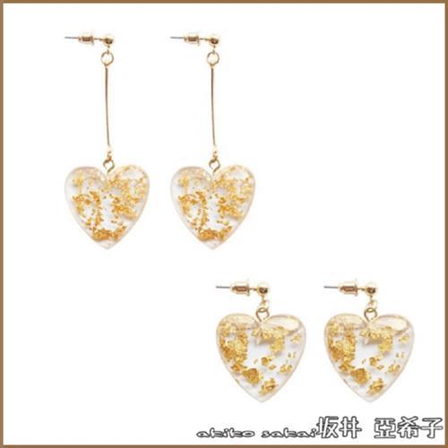 『坂井.亞希子』 清新甜美風格透明金箔愛心造型耳環
