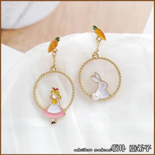 『坂井.亞希子』簡約插畫風愛麗絲與兔子蘿蔔造型耳環