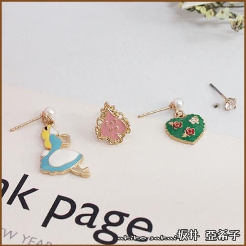 『坂井.亞希子』日系可愛夢幻愛麗絲愛心花朵造型四件組耳環