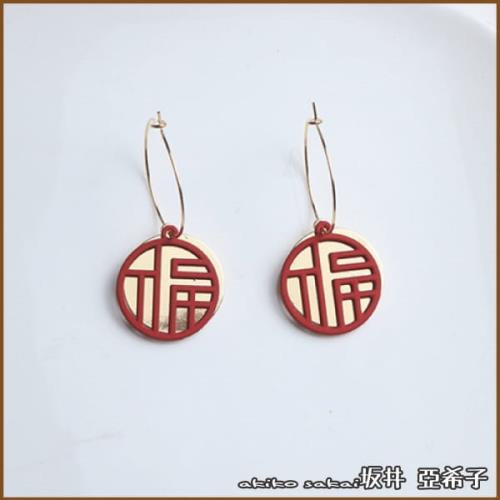 『坂井.亞希子』年節感鏤空福囍字體造型耳環(四款可選)
