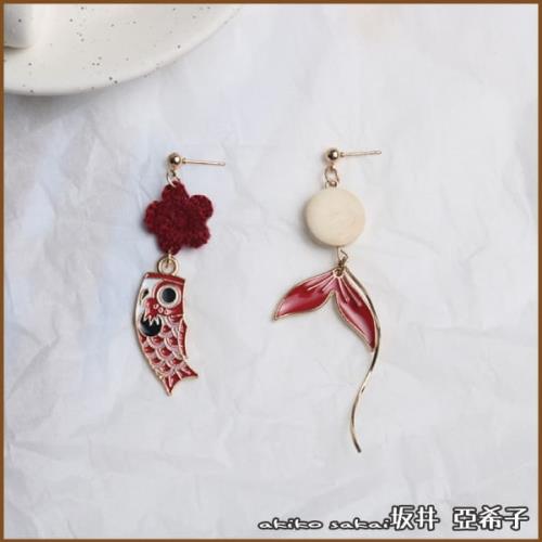 『坂井.亞希子』飛越的鯉魚旗不對稱造型耳環(耳針款/耳夾款)