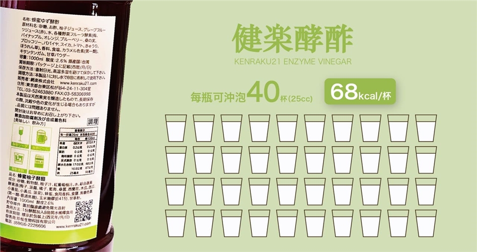 Kenraku21 健樂酵酢產品含砂糖,糖尿病患者 使用前請遵循醫師指示。