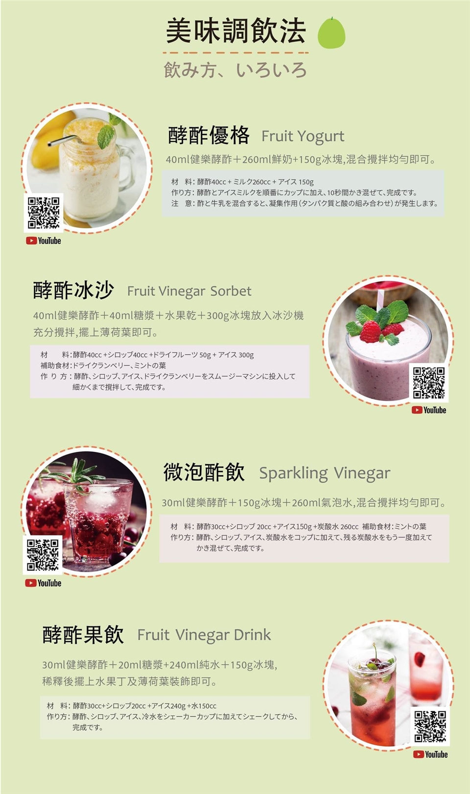 除了簡單的酵酢飲之外,Kenraku21健樂酵酢還能變出各式花樣,豐富您的飲食生活。