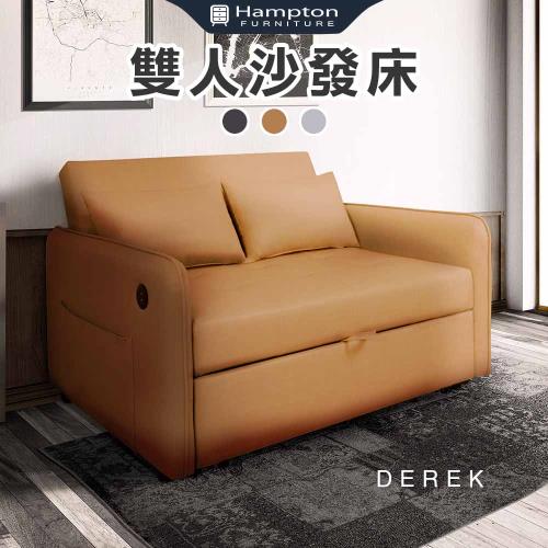 【Hampton 漢汀堡】德瑞克耐磨皮雙人沙發床-多色可選