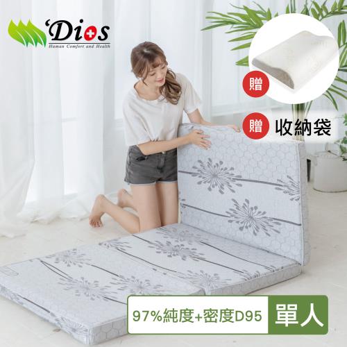【迪奧斯 Dios】好收納單人折疊床墊 7.5cm天然乳膠床墊|3尺單人床 三折床墊 學生宿舍床墊 日式睡墊 露營床