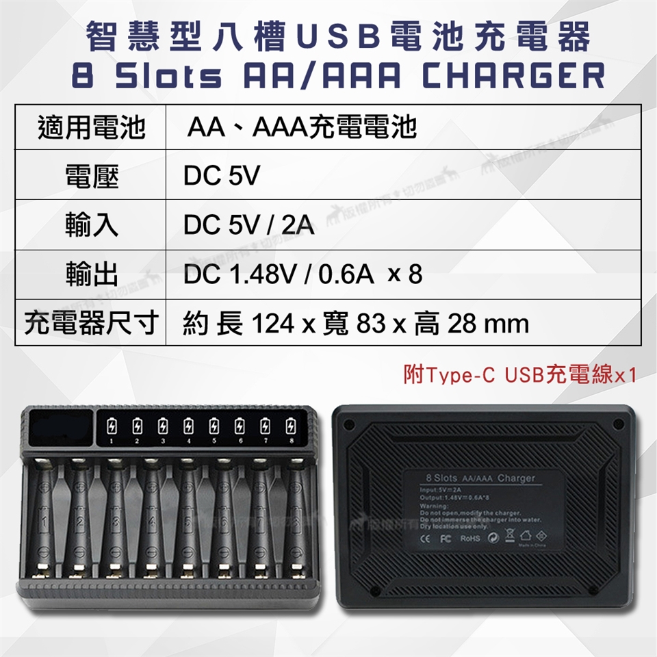 (3號8入+智慧型八槽USB電池充電器+送電池盒)