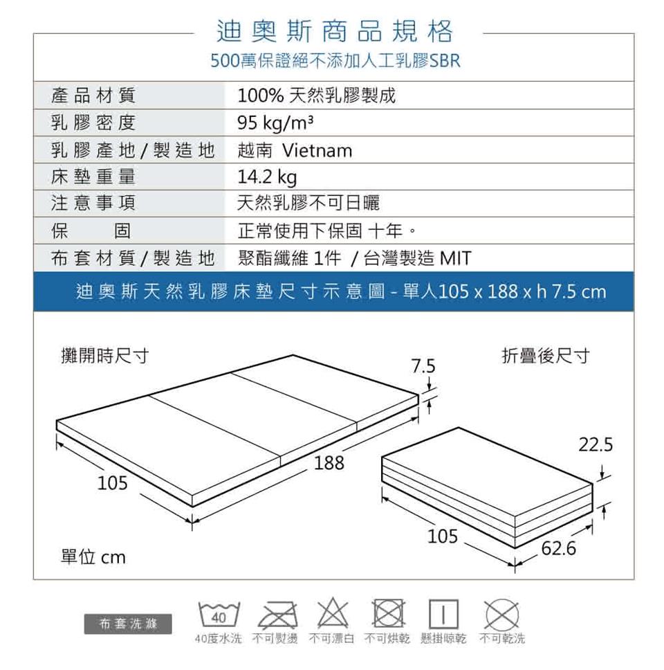 3.若乳膠商品不甚留下污漬,請使用濕毛巾擦拭,通風陰乾至完全乾燥,切勿日曬。