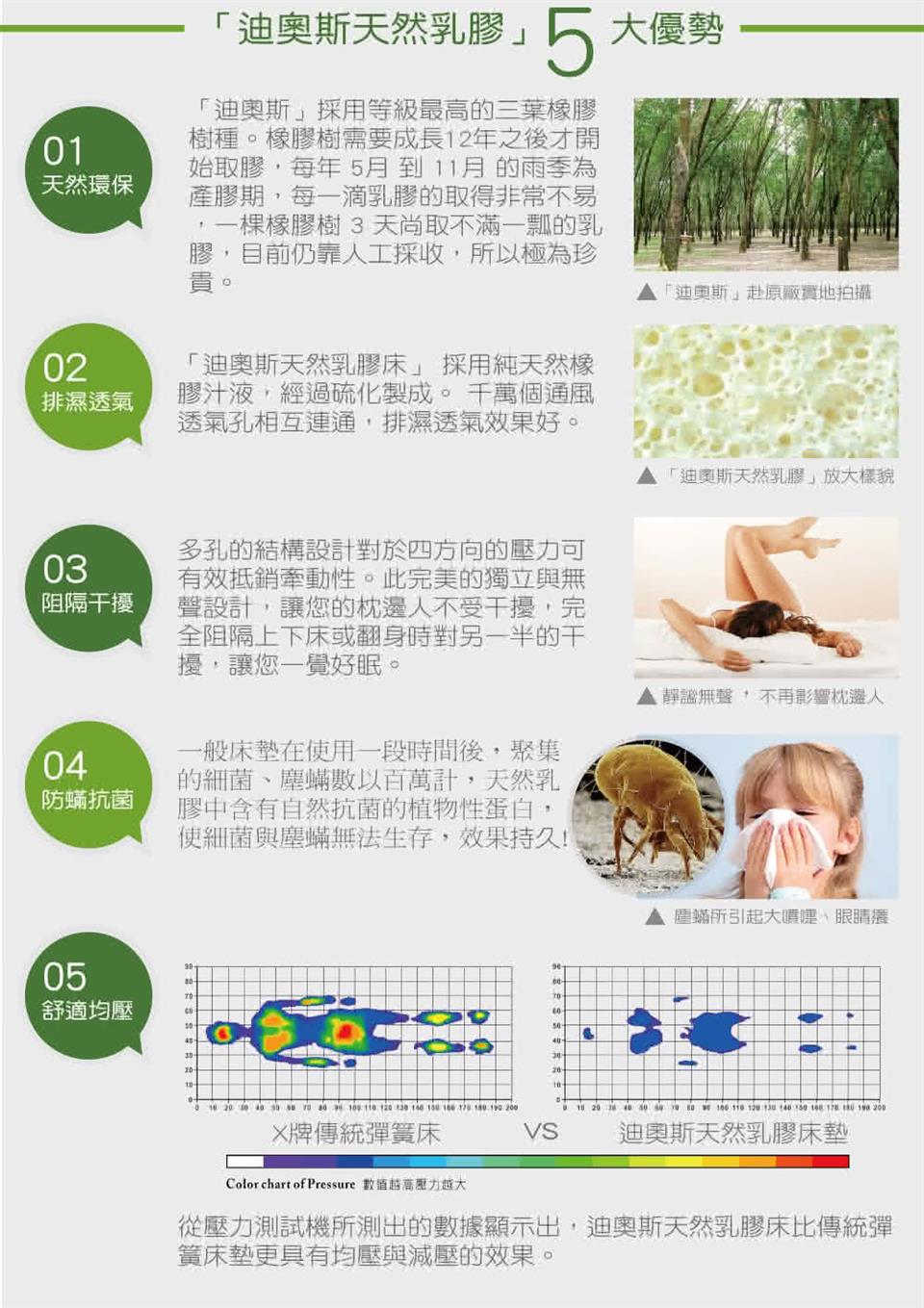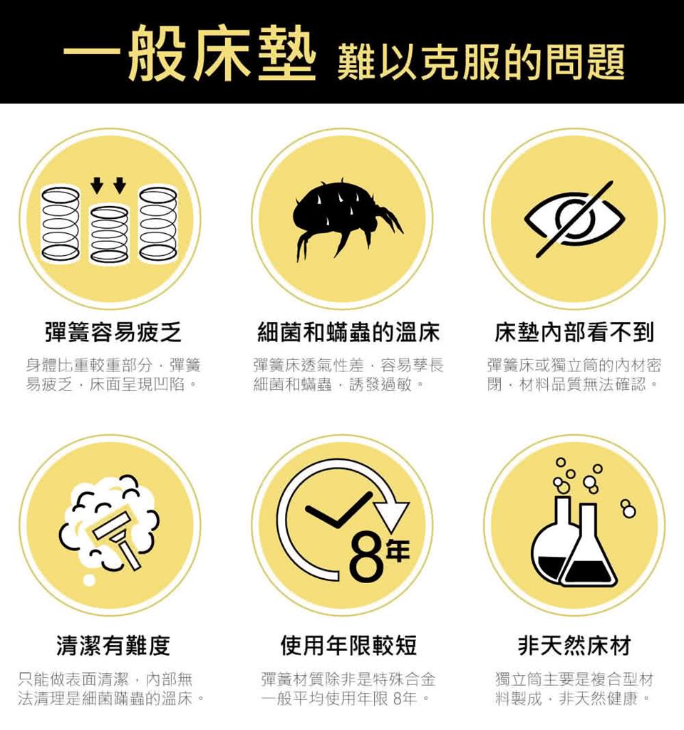1. 乳膠床墊不可日曬,床墊建議每半年至一年正反面翻轉一次、頭尾對調一次,能使床墊各部受力平均,延長床墊壽命。