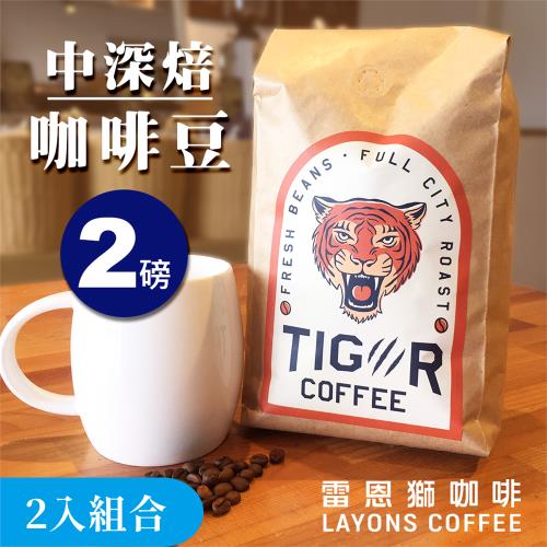 LAYONS 雷恩獅 | TIGER 咖啡豆【2入組合】中深焙 綜合配方豆 嚴選配方 義式 手沖 濃郁甘甜 焦糖 黑巧克力風味 2磅裝 908克/包