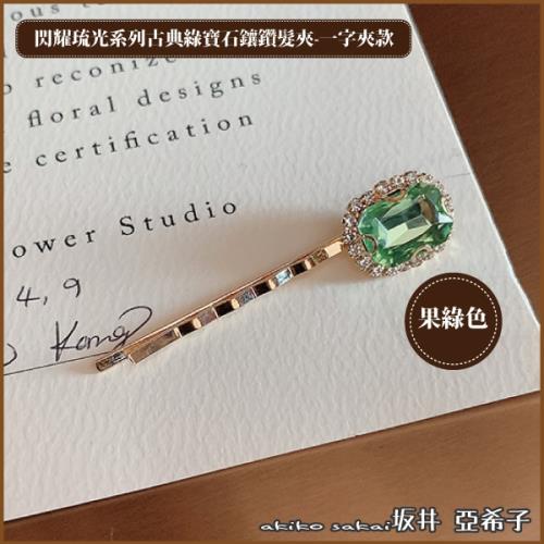 『坂井.亞希子』閃耀琉光系列古典綠寶石鑲鑽一字髮夾