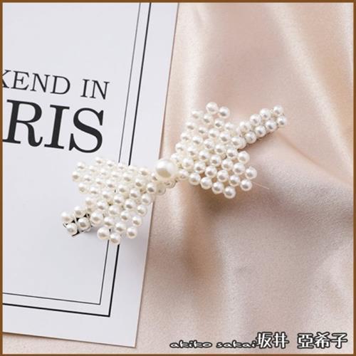 『坂井.亞希子』法式優雅少女復古蝴蝶結珍珠髮夾