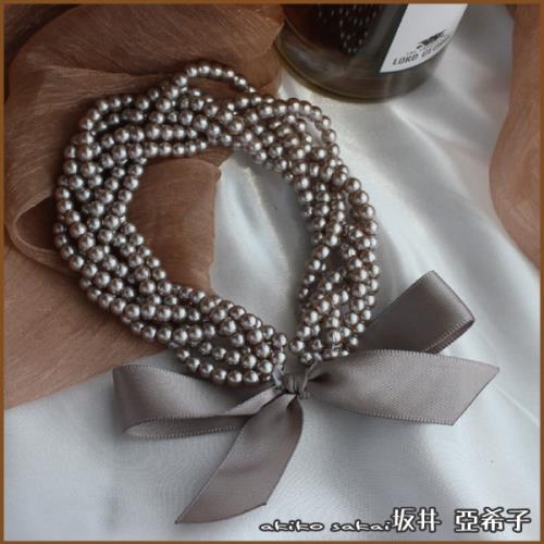 『坂井.亞希子』多層次珍珠編織造型緞帶多用途手鍊髮圈