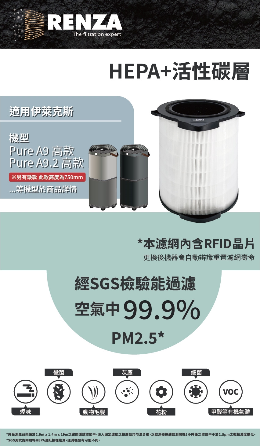 RENZA HEPA+活性碳 二合一濾網組