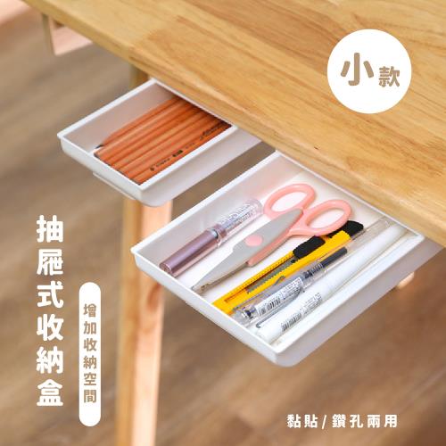 莫菲思 可黏貼可打孔桌下抽屜 桌下收納盒 小-11x22x3cm