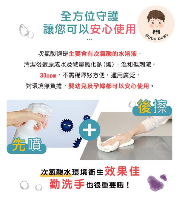 BUBUBOSS-寶寶次氯酸水微酸性-商品特色