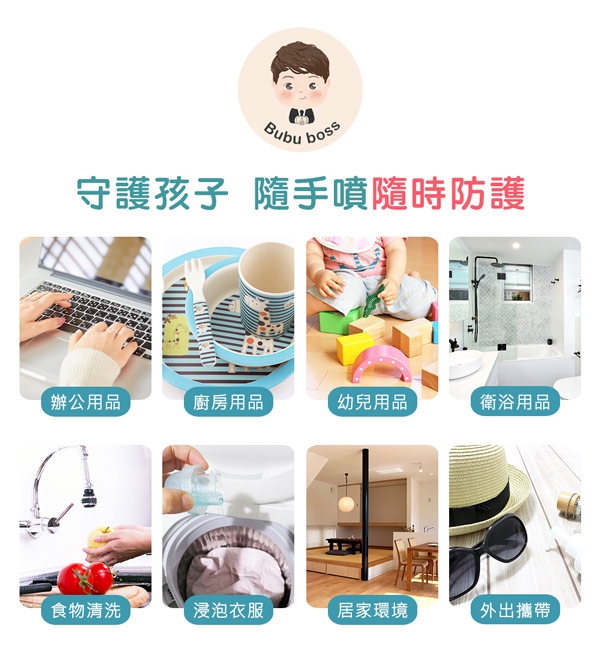 BUBUBOSS-寶寶次氯酸水-微酸性噴霧家用瓶-商品特色