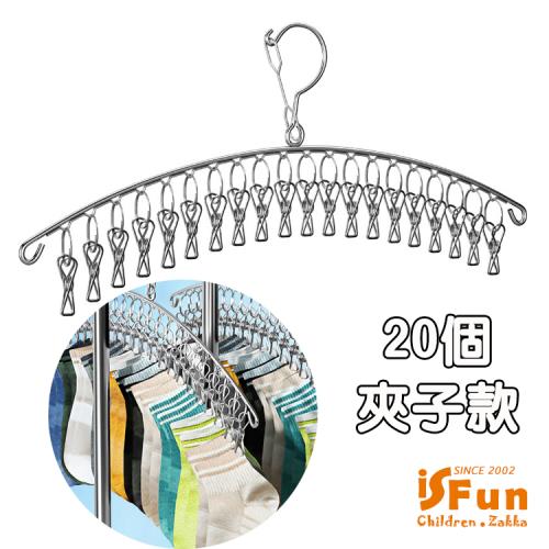 iSFun 強力衣夾 不鏽鋼圓弧曬衣襪子衣架(20個夾子款)