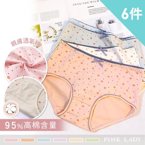 【PINK LADY】親膚高棉 橙色點點 可愛印花棉柔舒適透氣中腰內褲 9116(6件組)
