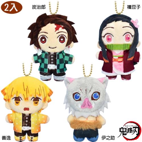 鬼滅之刃炭治郎禰豆子善逸伊之助絨毛娃娃絨毛娃娃吊飾掛飾鑰匙圈2入 29648【卡通小物】