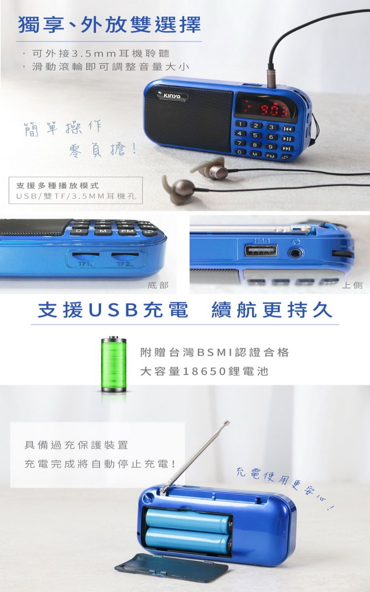 ■超長21cm拉杆式天線設計,加強收音信號