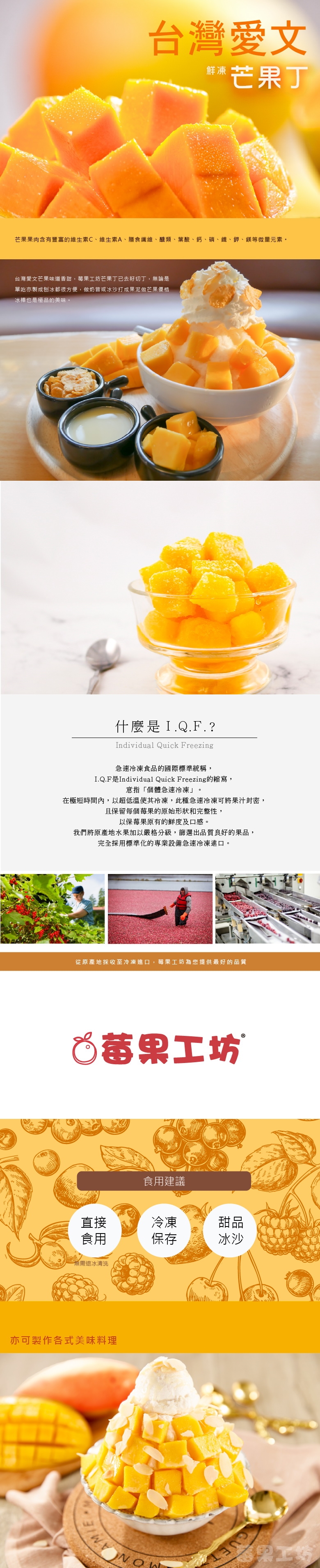 I.Q.F急速冷凍芒果丁,可直接當零嘴食用。