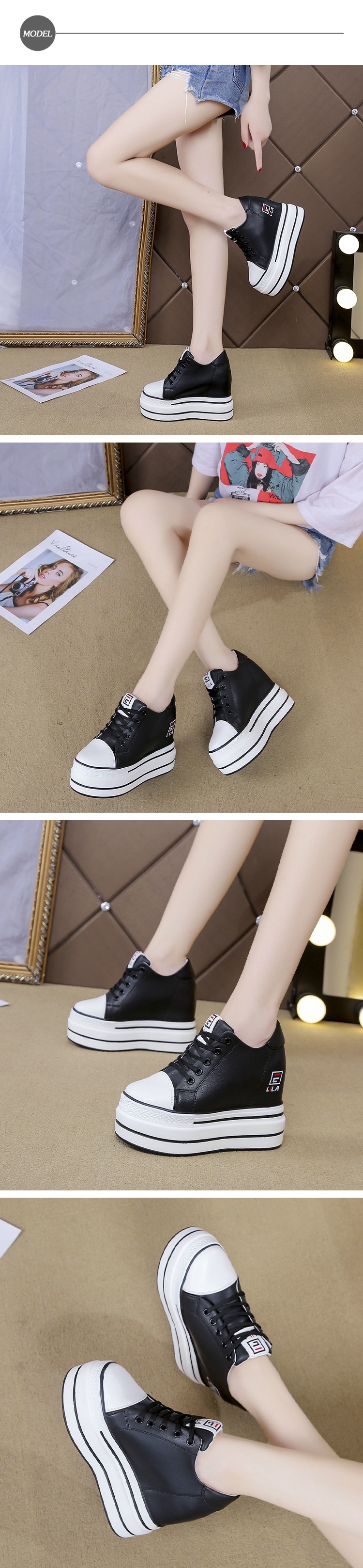 【HMH】休閒鞋 厚底休閒鞋/時尚百搭潮流復古鬆糕厚底內增高純色皮面休閒鞋 黑