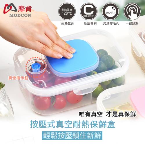 【摩肯】按壓式真空耐熱二分隔保鮮盒1200ml/真空飯盒 密封盒(無須抽氣棒)
