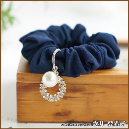 『坂井.亞希子』優雅氣質雪紡珍珠鑲鑽墜飾造型髮圈
