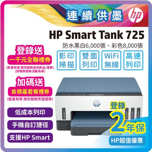 HP Smart Tank 725 連續供墨多功能印表機(影印/掃描/自動雙面列印)