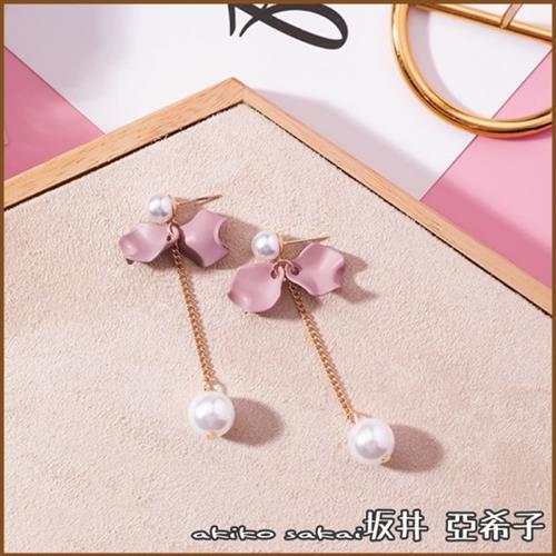 『坂井.亞希子』甜美百搭粉紫色花瓣造型垂墜耳環