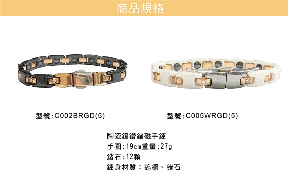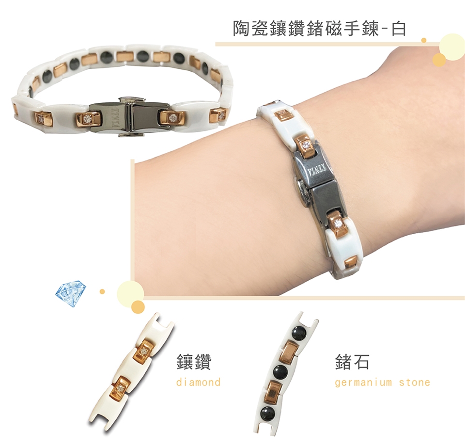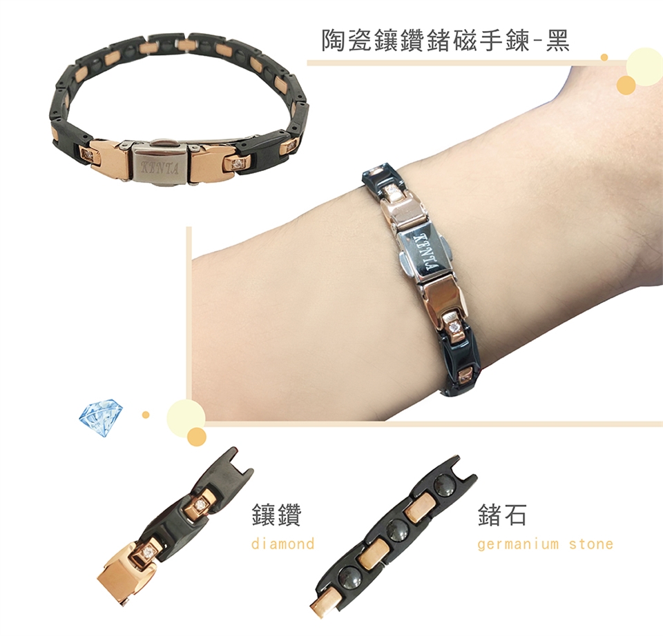 KOTO原廠外銷品牌KENTA 陶瓷鑲鑽鍺磁健康手鍊, 蝴碟扣款, 黑白可選