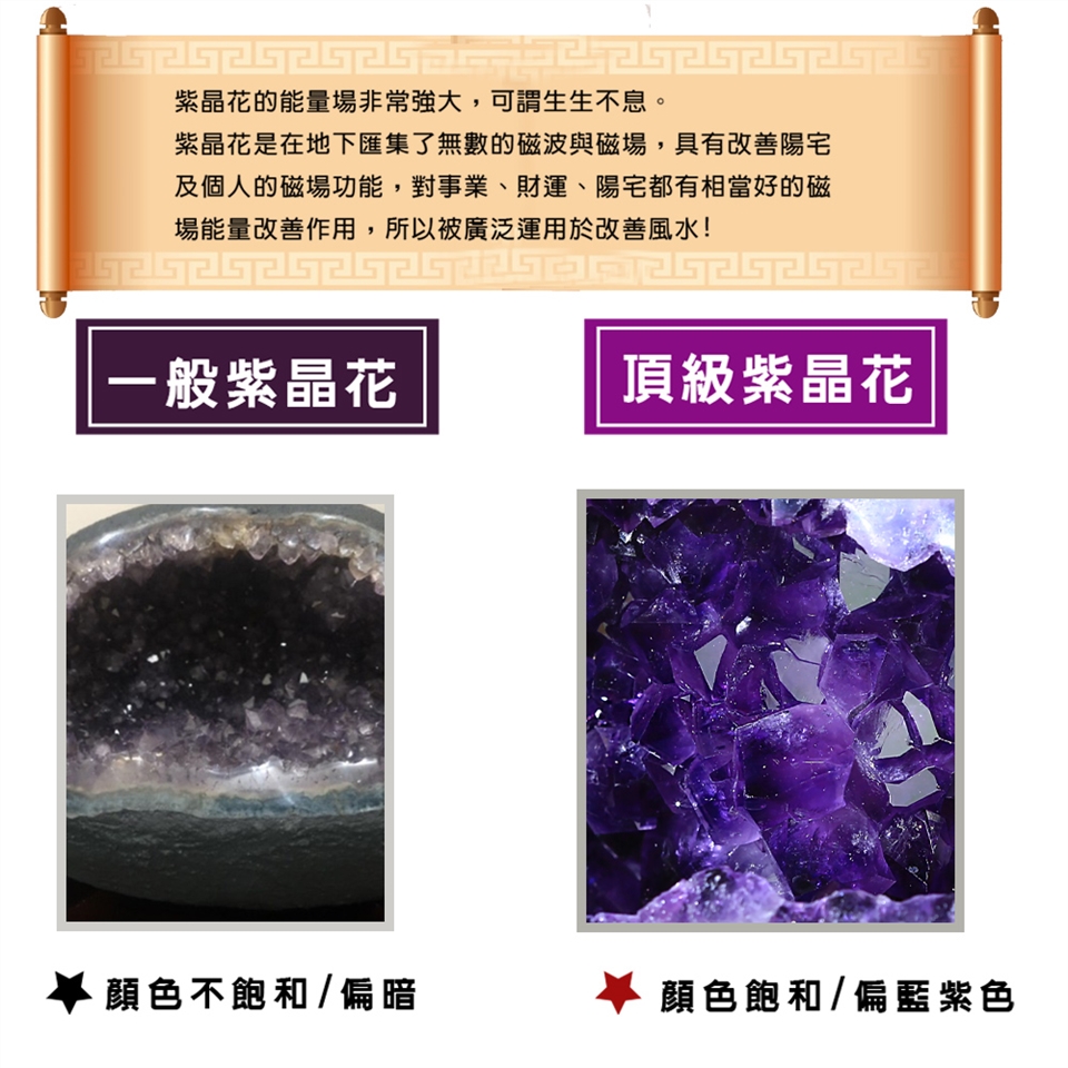 天然的紫晶洞作為風水擺件被廣泛的應用在我們的居家生活中或者是生意場所,起到招財鎮宅闢邪功效作用,紫晶洞的形狀也是多種多樣,不同的形狀的紫晶洞有著不同的說法,同時也滿足著人們不同的審美需求,但是無論是任何形狀的紫晶洞都具有招財鎮宅闢邪保平安的功效作用哦!