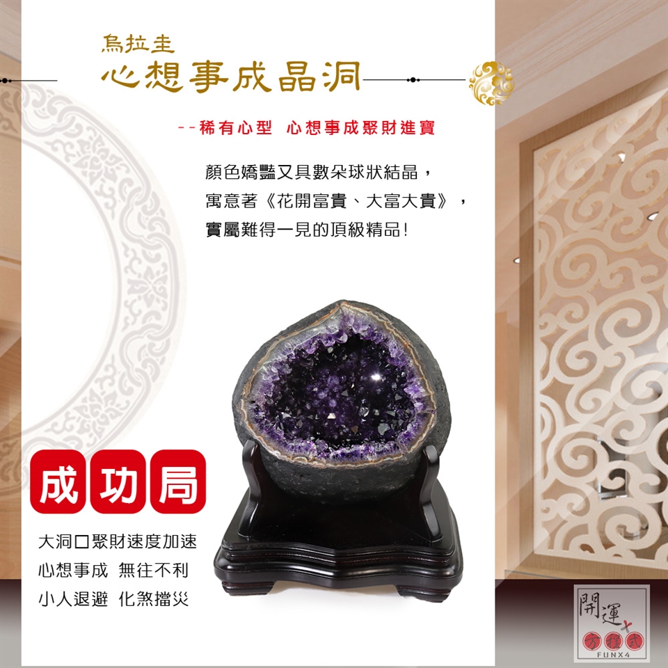 本件烏拉圭夢幻水晶形狀立體,有納炁於底、四象圓融、立突擎天的意境,象徵著氣聚八方而奮起拔高的絕佳彩頭。